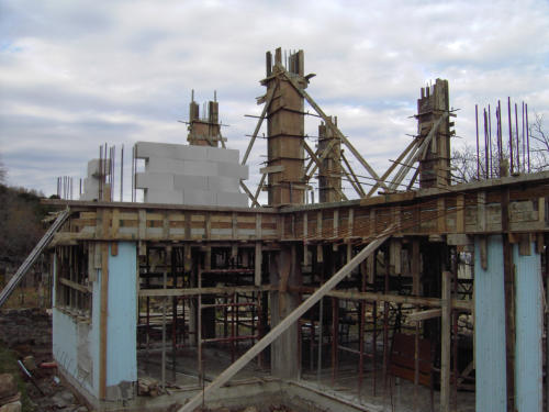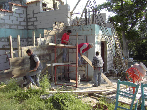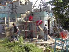 1.Stock anzulegen. Das eingeübte Team baute zügig die Verschalung.