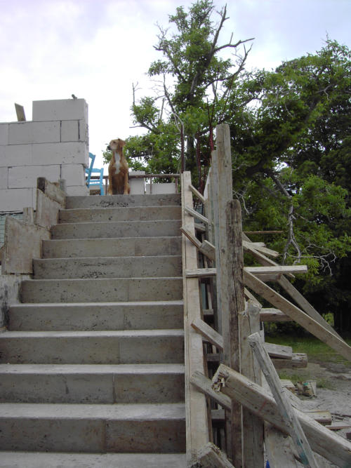 optischen Gründen bekamen die Mauern zum Haus hin jeweils eine Stufe.